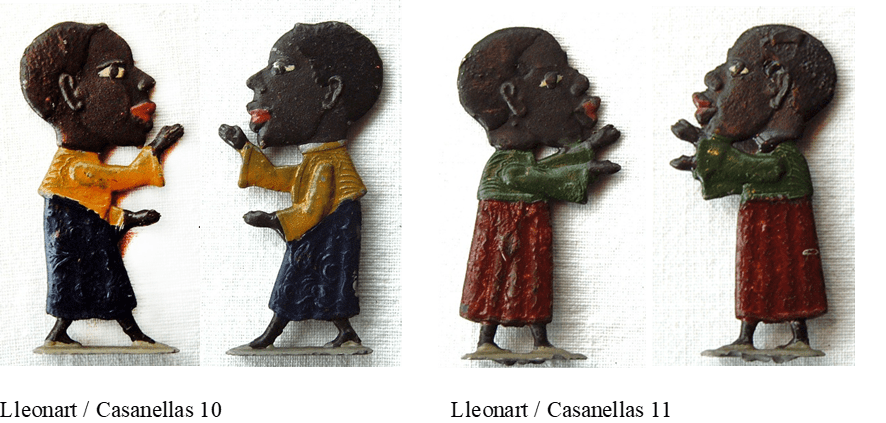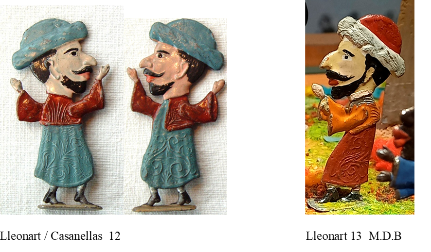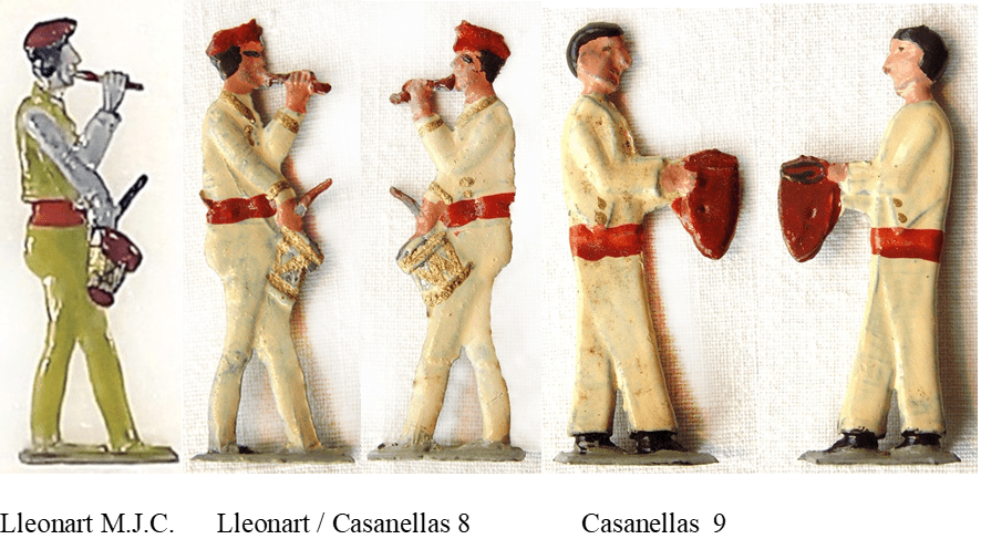 En la presentación que sigue las figuras de Casanellas son nombradas con su nombre si pertenecen a un molde nuevo o con ambos nombres Lleonart/Casanellas si pertenecen a un molde de Lleonart pero fundido en la época de Casanellas. En algunos casos hemos hecho la comparativa entre modelos de Casanellas y de Lleonart: los que expone el Museo Diocesano de Barcelona en la Pia Almoina (M.D.B.), el Museo de Historia de la Ciudad de Barcelona (M.H.C.B.) y el Museo del Juguete de Cataluña en Figueres (M.J.C.), además de algunas colecciones particulares.